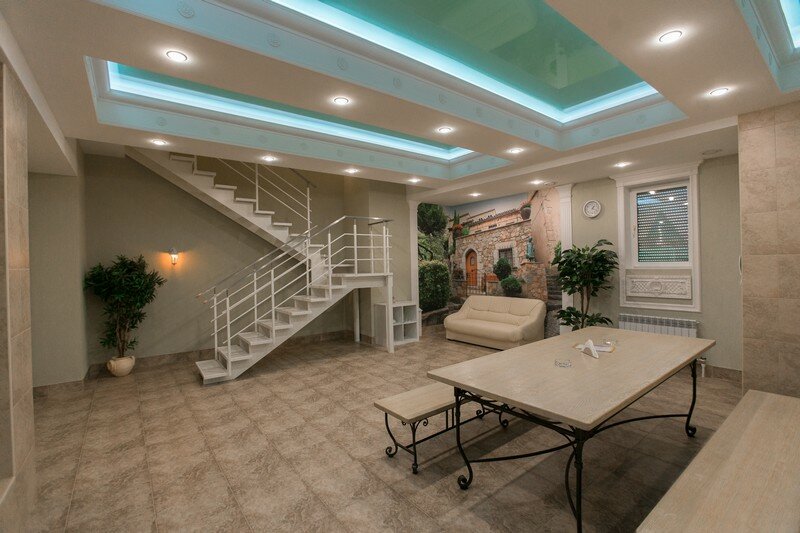 Финская сауна — это cамая жаркая баня из всех. Температура в финской сауне может достигать 120˚С. Главным отличием является самая низкая влажность воздуха, порядка 10-15%. Благодаря низкой влажности воздуха в сауне легко дышать, и высокая температура переносится легче. Печь в финской сауне как и в других банях традиционная каменная. Оптимальным считается количество заходов в финскую сауну – от 3 до 8. В номере имеется бассейн, отдельная комната отдыха, стол, телевизор.